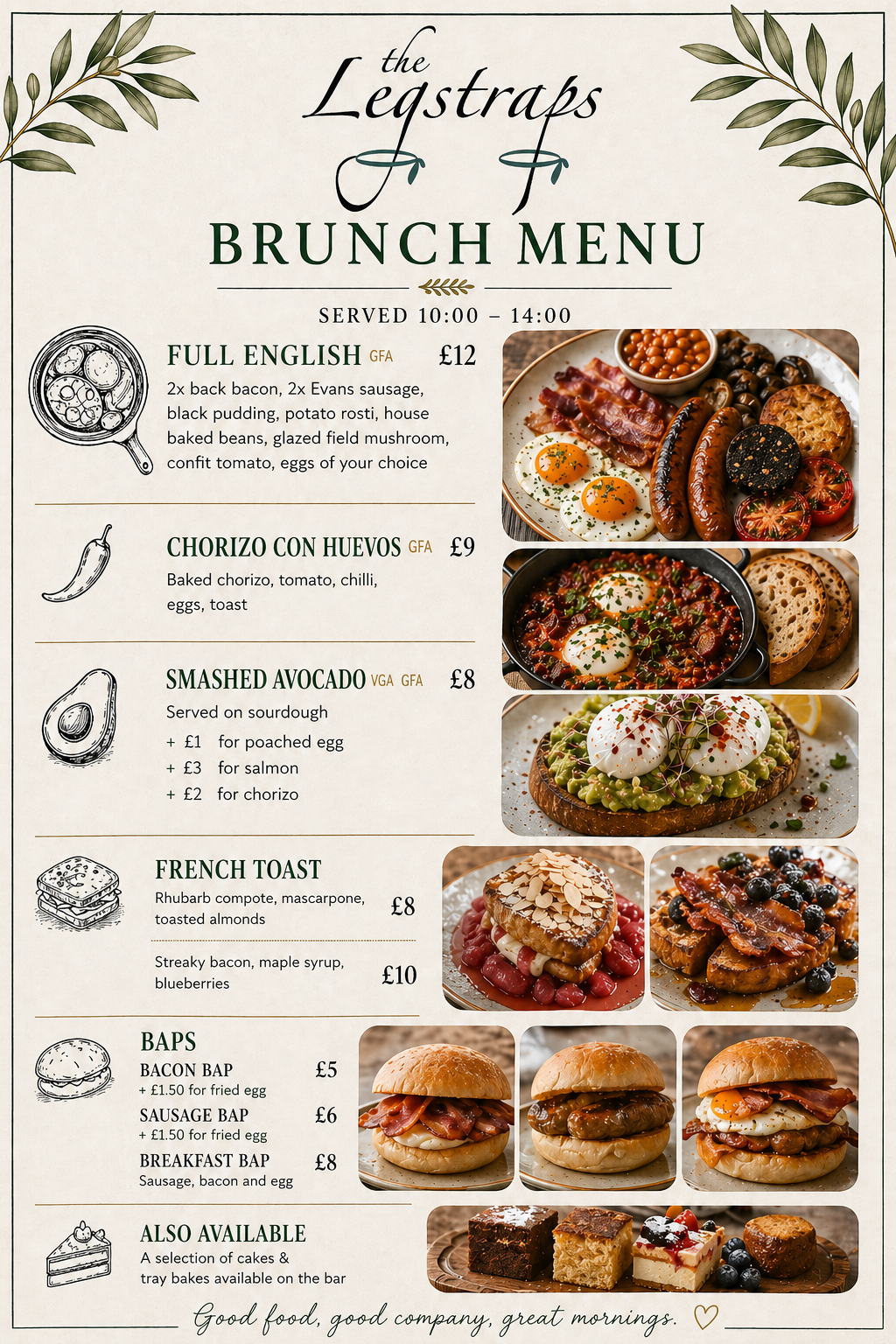 Back to All Events Coffee and brunch morning Wednesday 20 May 2026 10:00 14:00 Google Calendar ICS The following menu will be available exclusively from 10am-2pm for this day only (Weds 11th May). Plus the full bar will be open, along with a selection of teas and coffees!